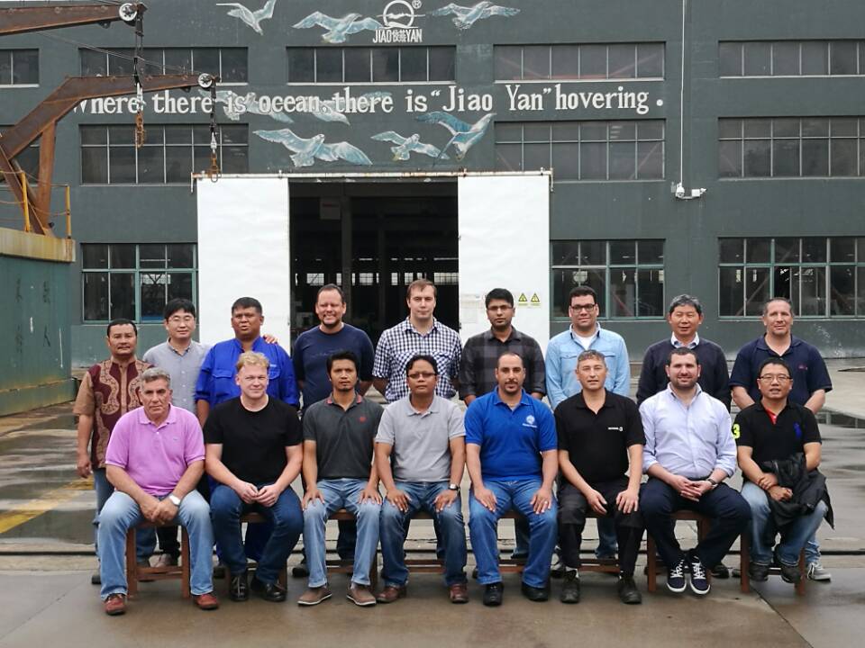 17名船舶服务精英人员来到星空(中国)船舶设备有限公司,对厂家设备的新设计,新产品进行深层次的学习和服务训练,成为佼燕救生设备的优秀服务商,为佼燕的客户提供更优质,更专业,更及时的服务.
