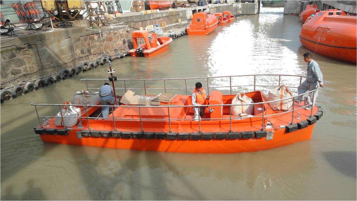 ◆ 发动机分舷外挂机(汽油机)和舷内柴油机,柴油机配备的推进装置,一般救助艇配螺旋桨,高速救助艇配喷水推进器